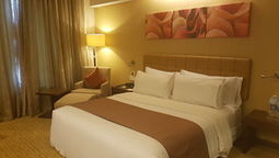 A king room has a king-size bed. The size of the bed is 6 feet by 6 feet. An extra bed may be added to this room at the request of a guest and charged accordingly.
